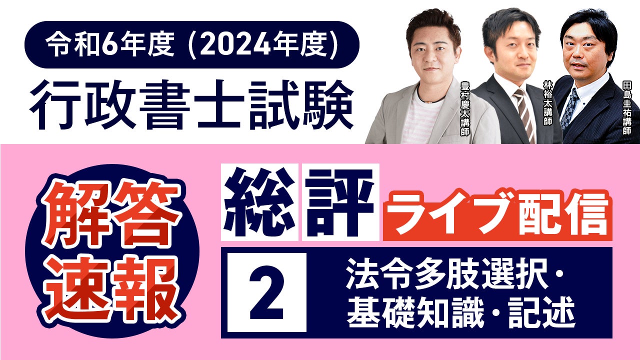 アガルートアカデミーは2024年行政書士試験の試験当日に「解答速報」、講師3名による 「総評」「トークライブ」YouTube配信を会員登録不要で無料公開いたします。ぜひ、試験の振り返りにお役立てくださいませ。