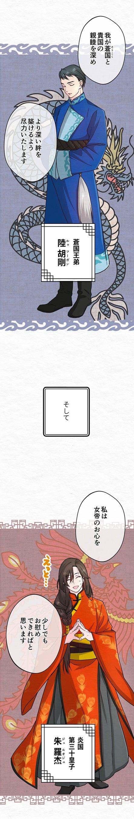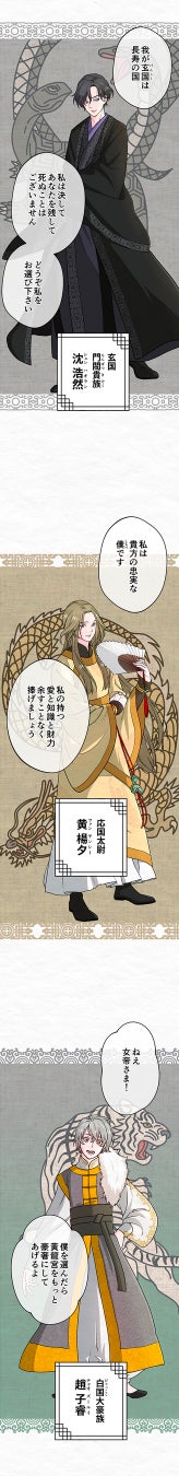 今作は、明るい気持ちで読めるラブコメを軸に、女帝の夫候補に選ばれた公達同士の恋の芽生えを描く、中華後宮婚活サバイバルBLとなっています。仕事や勉強で少し疲れた心に癒しやときめきを与えられるような作品になればと願い生まれました…! また策士で腹黒い部分があるハオランと、初心で天然なルオジェのやりとりが面白いので楽しみにしていただきたいです。多彩なキャラクターが出てくるので、あなただけ推しもぜひ見つけてください!