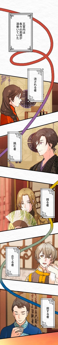 原作のmerorico先生は現代POPな恋愛の感性と中華風王宮ファンタジーを掛け合わせ「読みやすいBLを」と制作くださいました。ぜひ気構えなく訳あり婿候補たちの恋模様をお楽しみください。