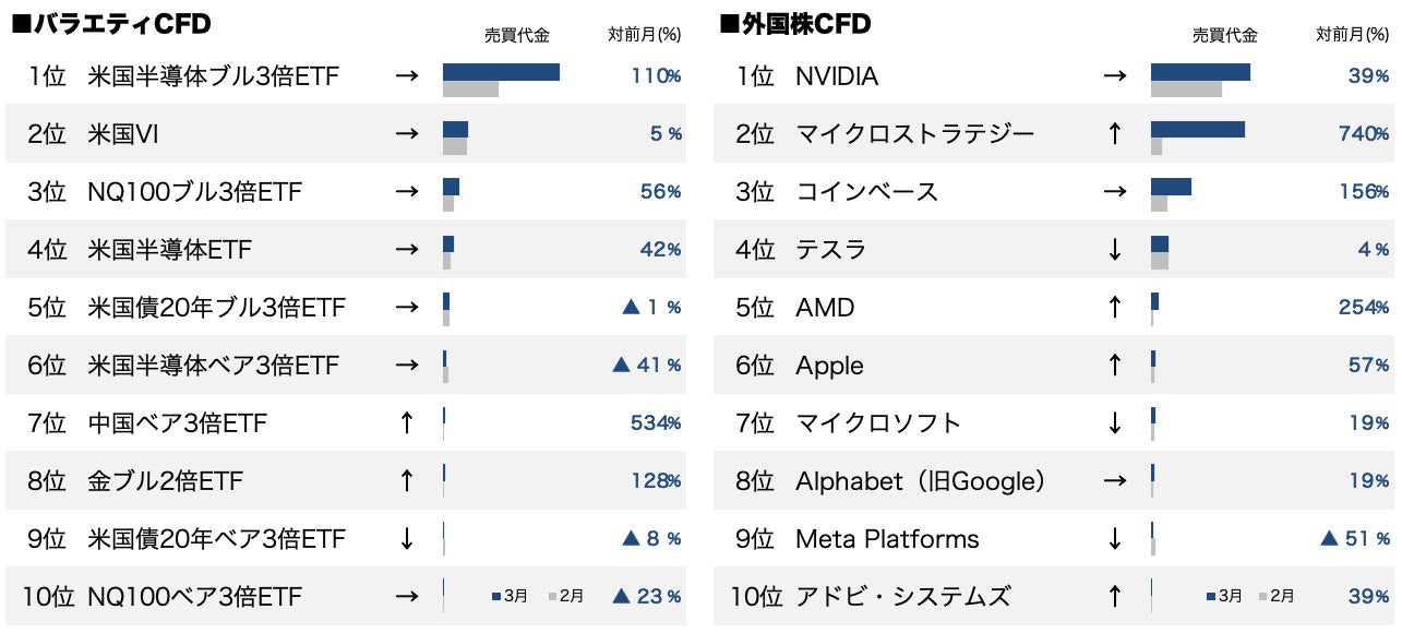 ~総合首位は日本225!バラエティCFDは米国半導体ブル3倍ETF、外国株CFDはNVIDIAが首位に~