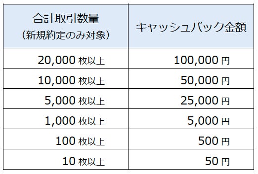 新規約定1枚あたり5円、最大12.5万円をキャッシュバック