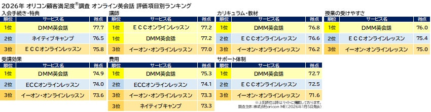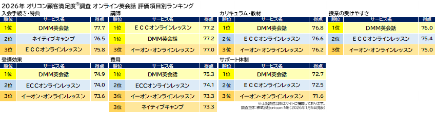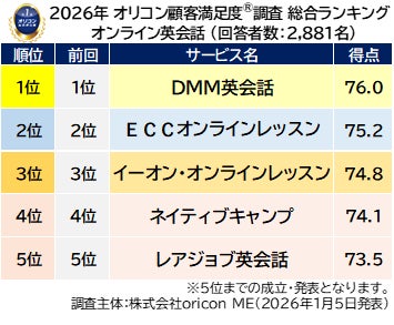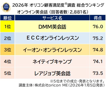 オリコン株式会社(本社:東京都港区 代表取締役社長:小池 恒、略称:オリコン)は、グループ会社である株式会社oricon MEが、実際のサービス利用者を対象に第三者の立場で実施した、『オンライン英会話』についての顧客満足度調査の結果を、2026年1月5日(月)14時に「オリコン顧客満足度®」公式サイト内にて発表いたしました。