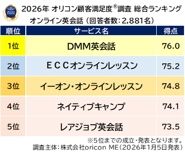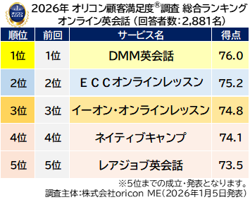 満足度の高い『オンライン英会話』ランキング┃【DMM英会話】が2年連続3度目の総合1位(オリコン顧客満足度調査)