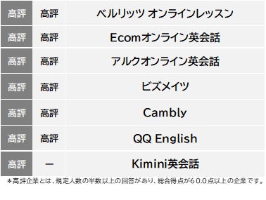 目的別「日常英会話」部門では、総合4位の【ネイティブキャンプ】が【DMM英会話】と並び1位を獲得し、3年連続の1位となりました。一方、「ビジネス英会話」部門では、高評企業の【ベルリッツ オンラインレッスン】が2年連続3度目の1位を獲得(2019年、2025~2026年)。2位と5.8pt差をつける結果となりました。