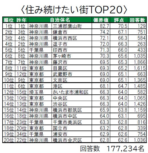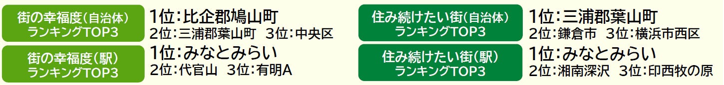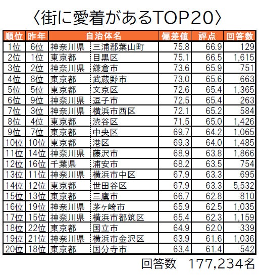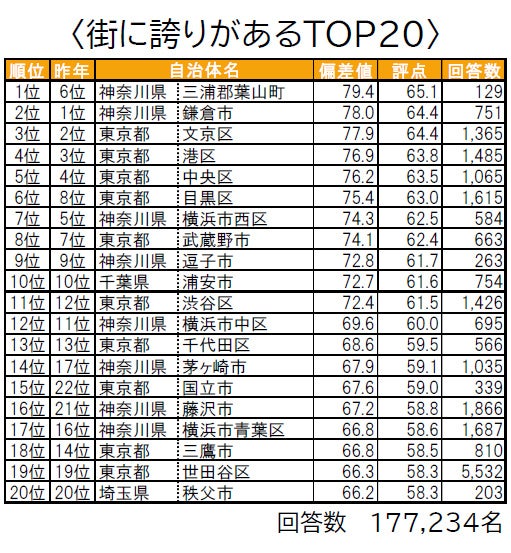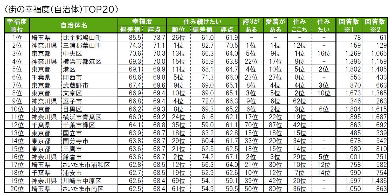 - 街の幸福度(自治体)ランキング<TOP20>&住み続けたい街/街に誇りがある/街に愛着がある<各TOP20>