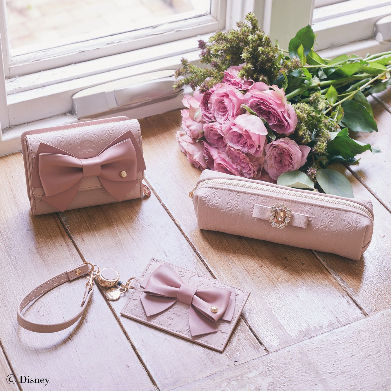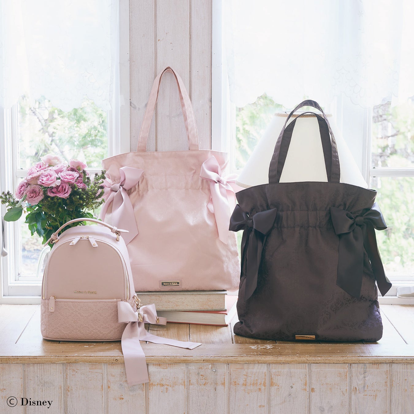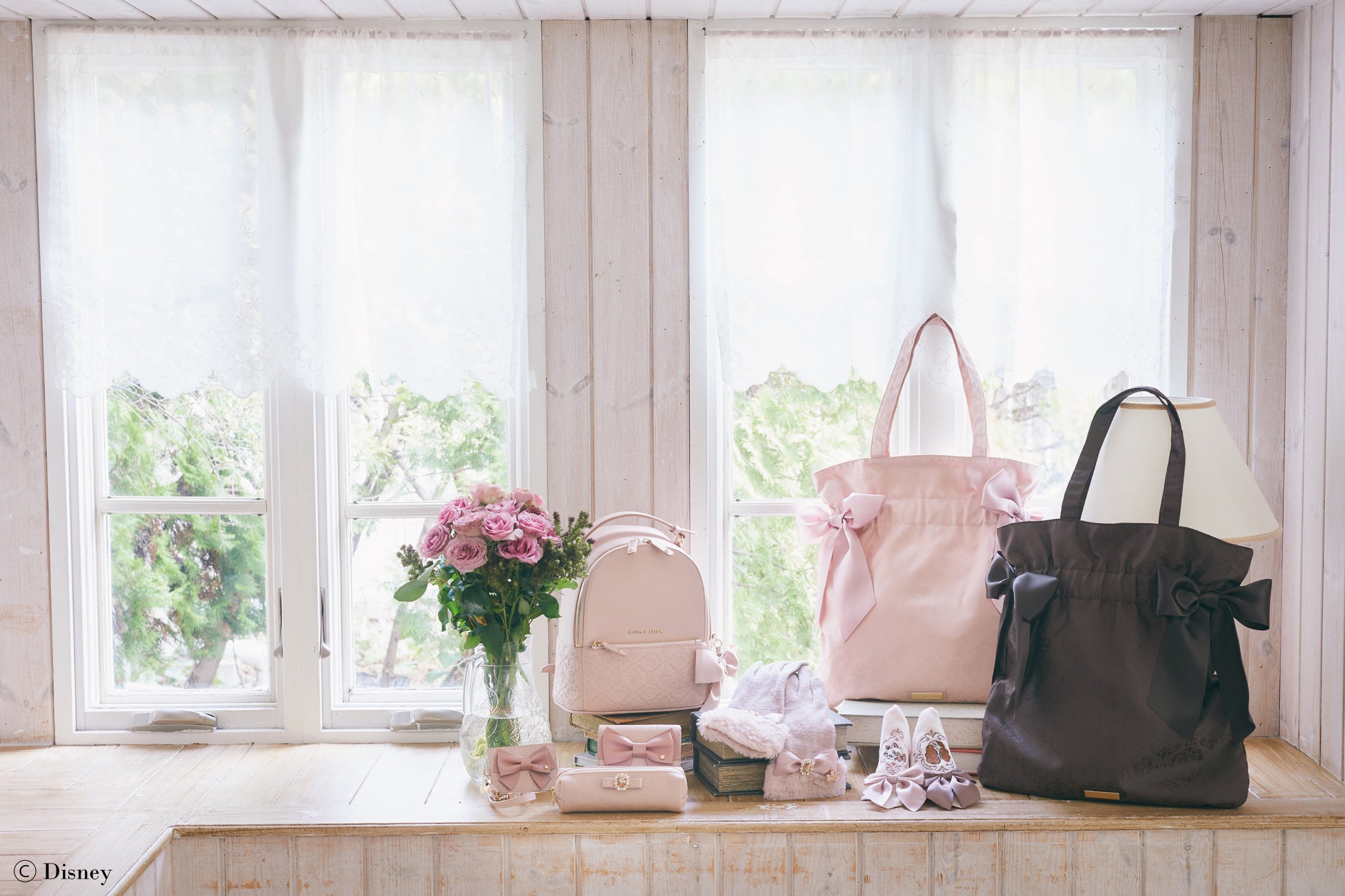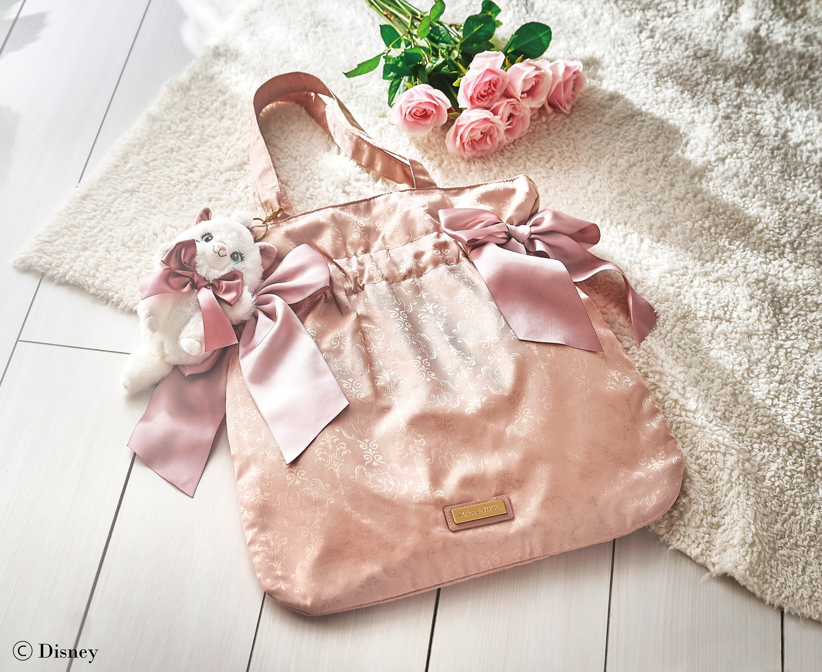 ラインナップは、「Maison de FLEUR」で大人気のダブルリボントートバッグやリボンチャーム付きリュック、グローブなどのファッションアイテムをはじめ、プレゼントとしてもおすすめの化粧箱入りウォレットやパスケースなどの雑貨を取り揃えています。トートバッグはオリジナルのジャカード織、リュックやウォレットなどはキャラクターのシルエットを型押しし、さりげないデザインに仕上げ、どんなコーディネートにも取り入れやすいアイテムです。さらに、共同企画ならではのディズニー マリーとレディのエコバッグ入りぬいぐるみキーチェーンもご用意しており、ファン必見のアイテムとなっています。いずれも大人かわいいピンクベージュやブラウンを基調にした上品なデザインで、これからの季節のお出かけにぴったりのコレクションです。