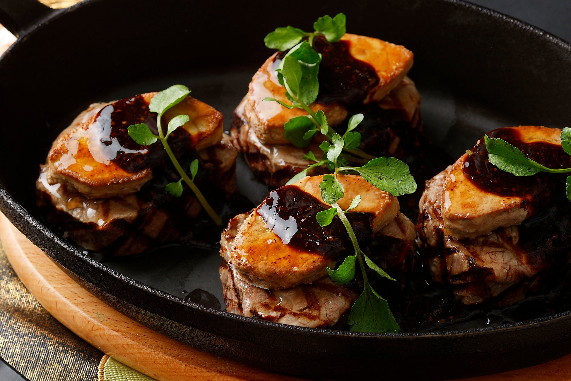 [温製料理] 国産伊勢海老のグラタン、国産牛フィレ肉とフォアグラのロッシーニ風