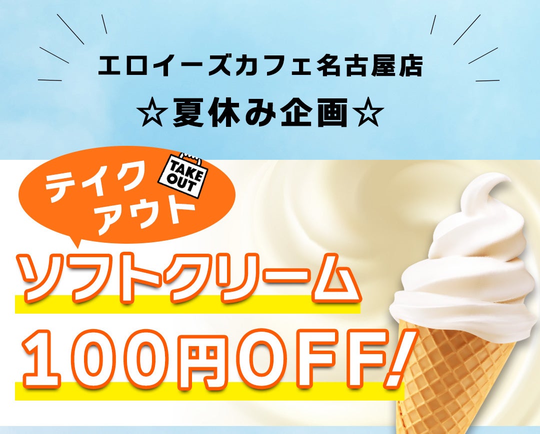 【名古屋市中区•久屋大通公園】夏休み特別企画!8月19日(土)・8月20日(日)はテイクアウトのソフトクリームを100円引きでご提供|エロイーズカフェ名古屋店