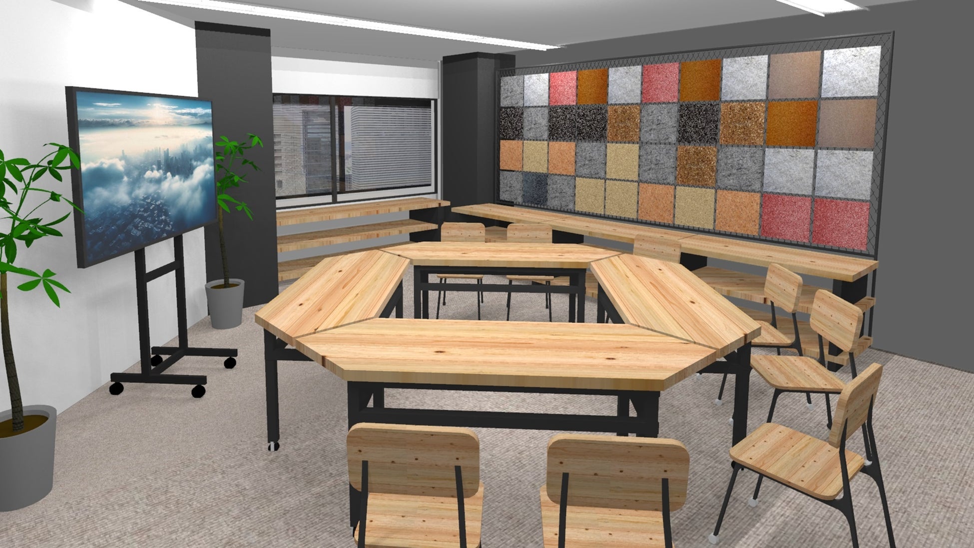 ・ DNPとパートナーが未来を共創するためのミーティングスペースを設置します。定員20名程度で、デザインシンキングによるビジネス開発など、新しい価値をつくり出す「対話と協働」を行う空間です。