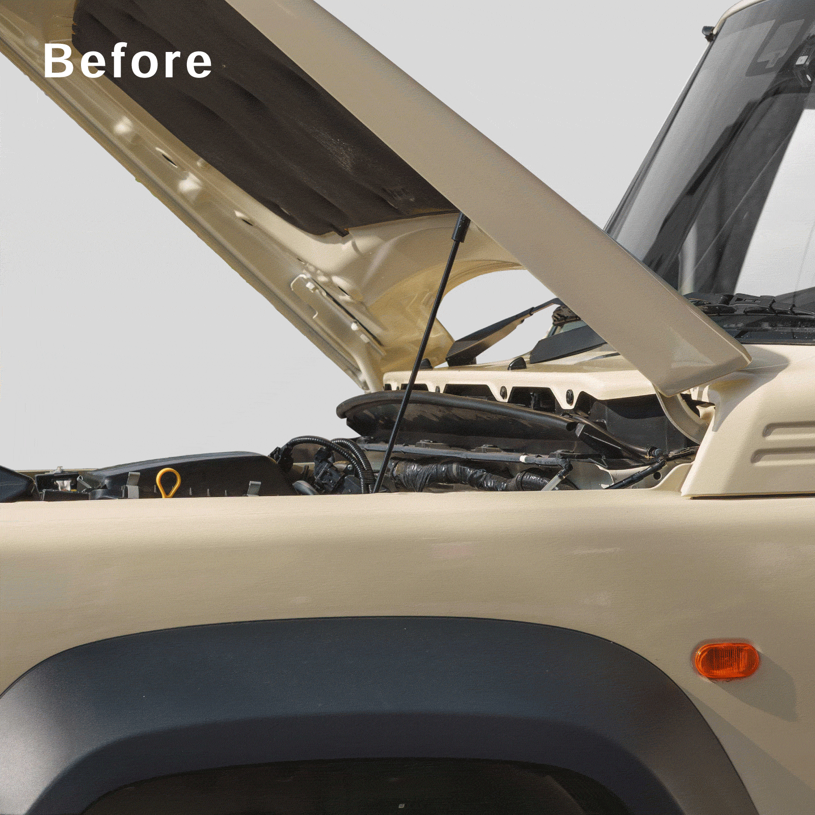 しっかりと支える機能性を持ちながら、デザインにもこだわり、ジムニーのエンジンルームに美しく調和します。