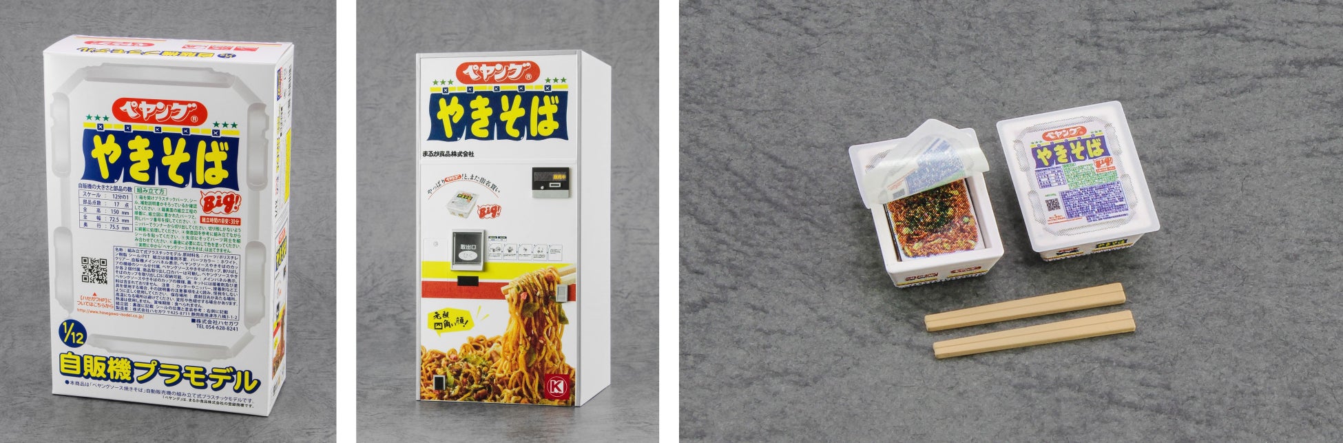 【創業50周年記念限定商品】 ペヤング × ヤマダ スペシャルコラボ!! 1/12レトロ自販機プラモデルにペヤング自販機が登場