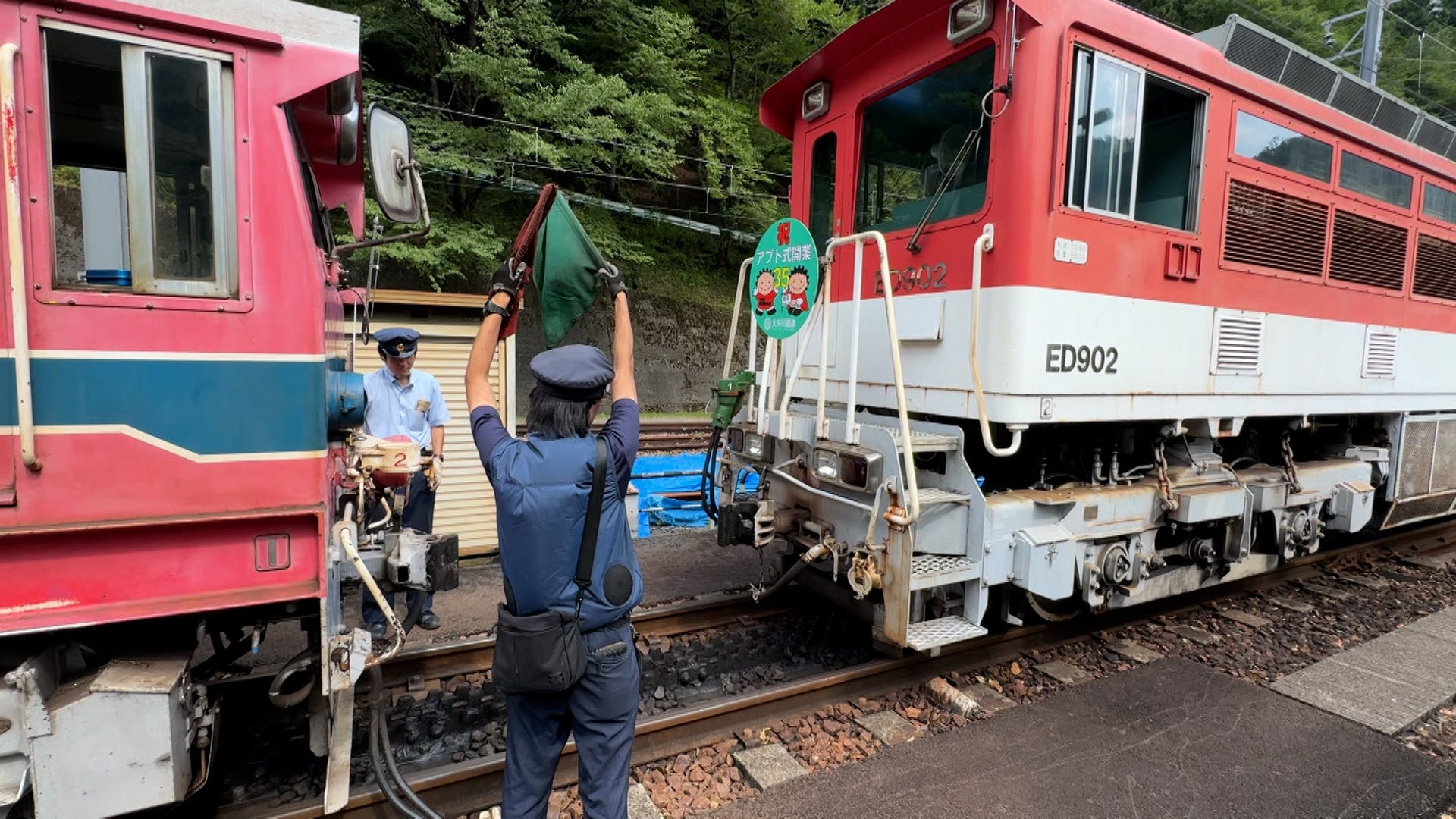 急勾配の区間は、巨大な歯車で登り坂をサポートするアプト式列車に。連結に車内アナウンスに、安全確認に…忙しすぎる車掌さんに、西村も最敬礼する。後編では、いよいよビール列車に乗車!早朝からハイテンションだった西村、果たして気力はもつのか?
