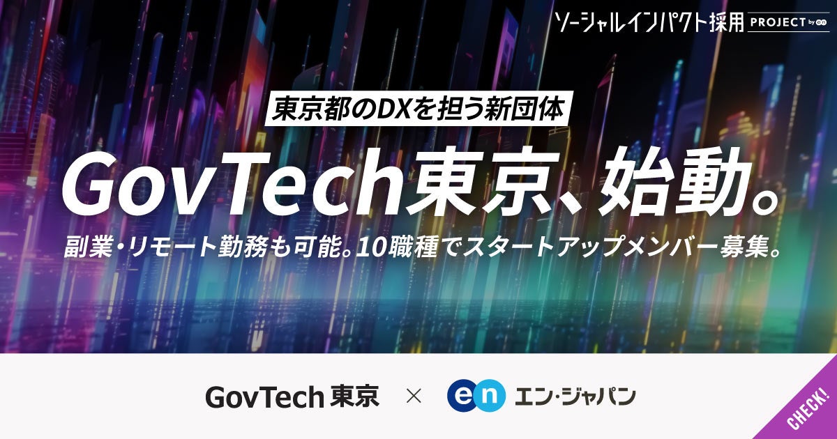 都のDXを担う新団体「GovTech東京」が、エン・ジャパンを通して、立ち上げメンバーを公募!