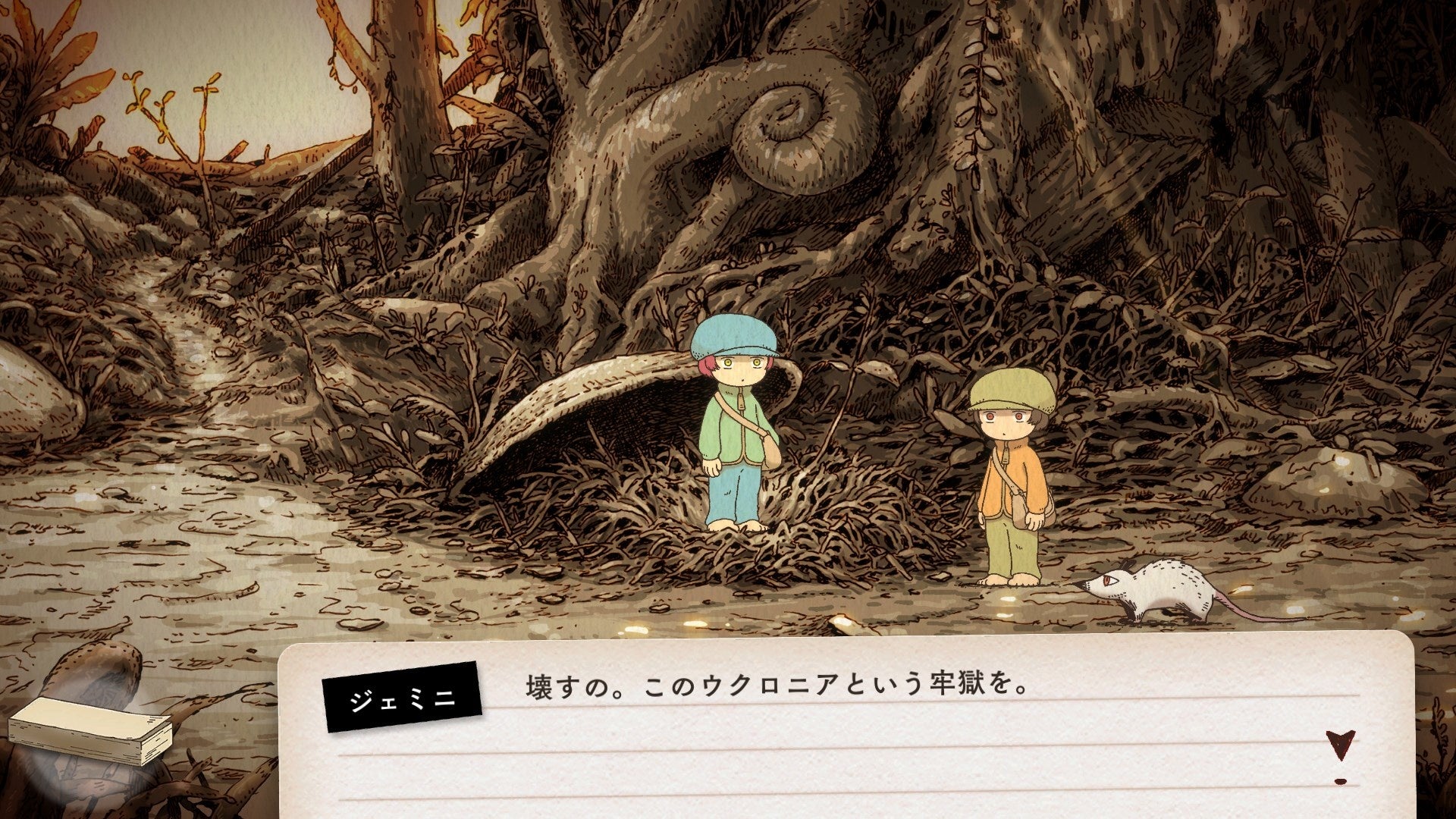 尻尾に火をつけたオポッサム「サリー」に誘われ、自身の物語を追う旅に出かける。