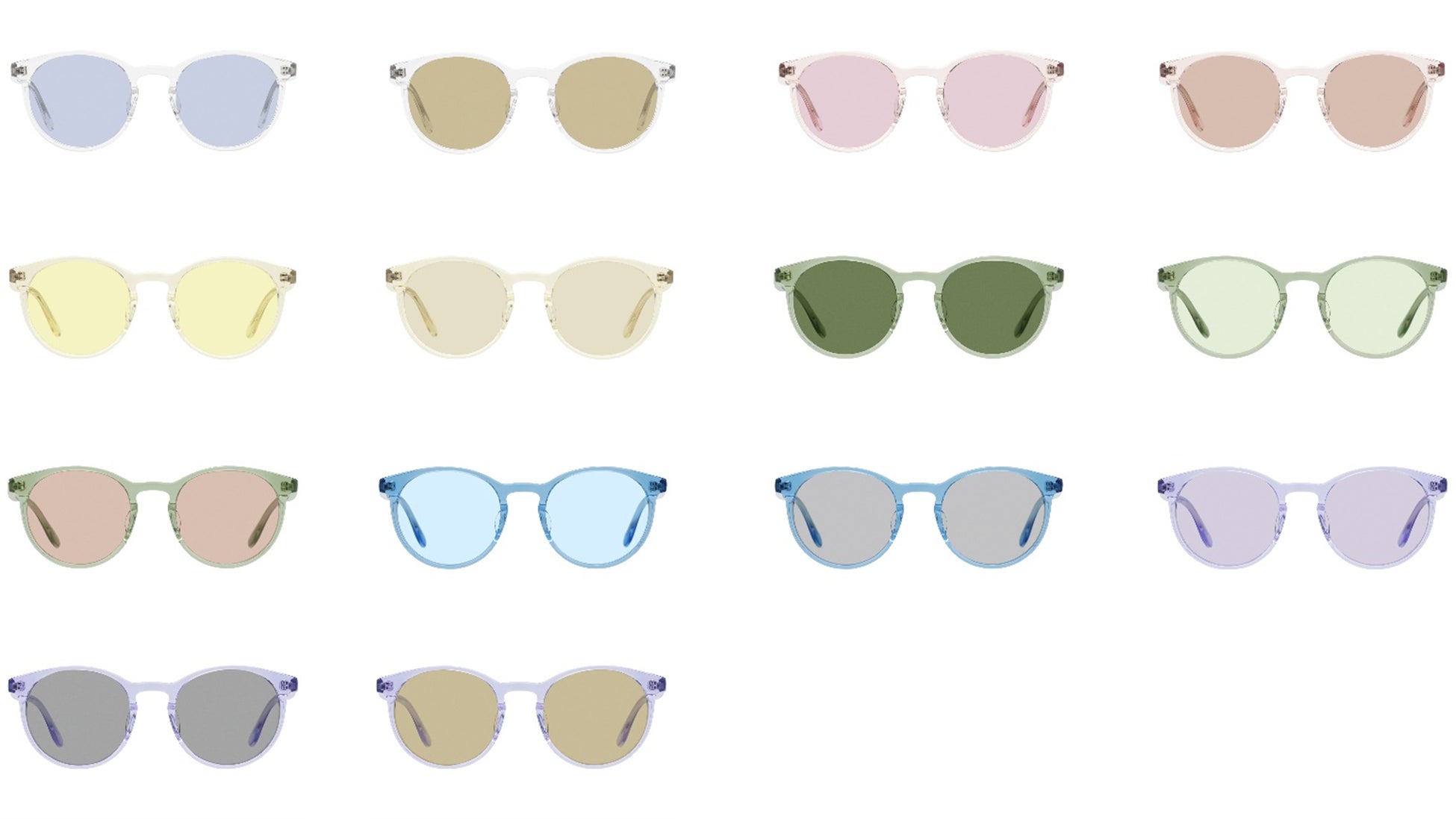 注目はメガネの上からかけられるサングラス「オーバーグラス」、その他にもカラフルな新作サングラス1型14種や高機能素材のメガネ2型12種を展開