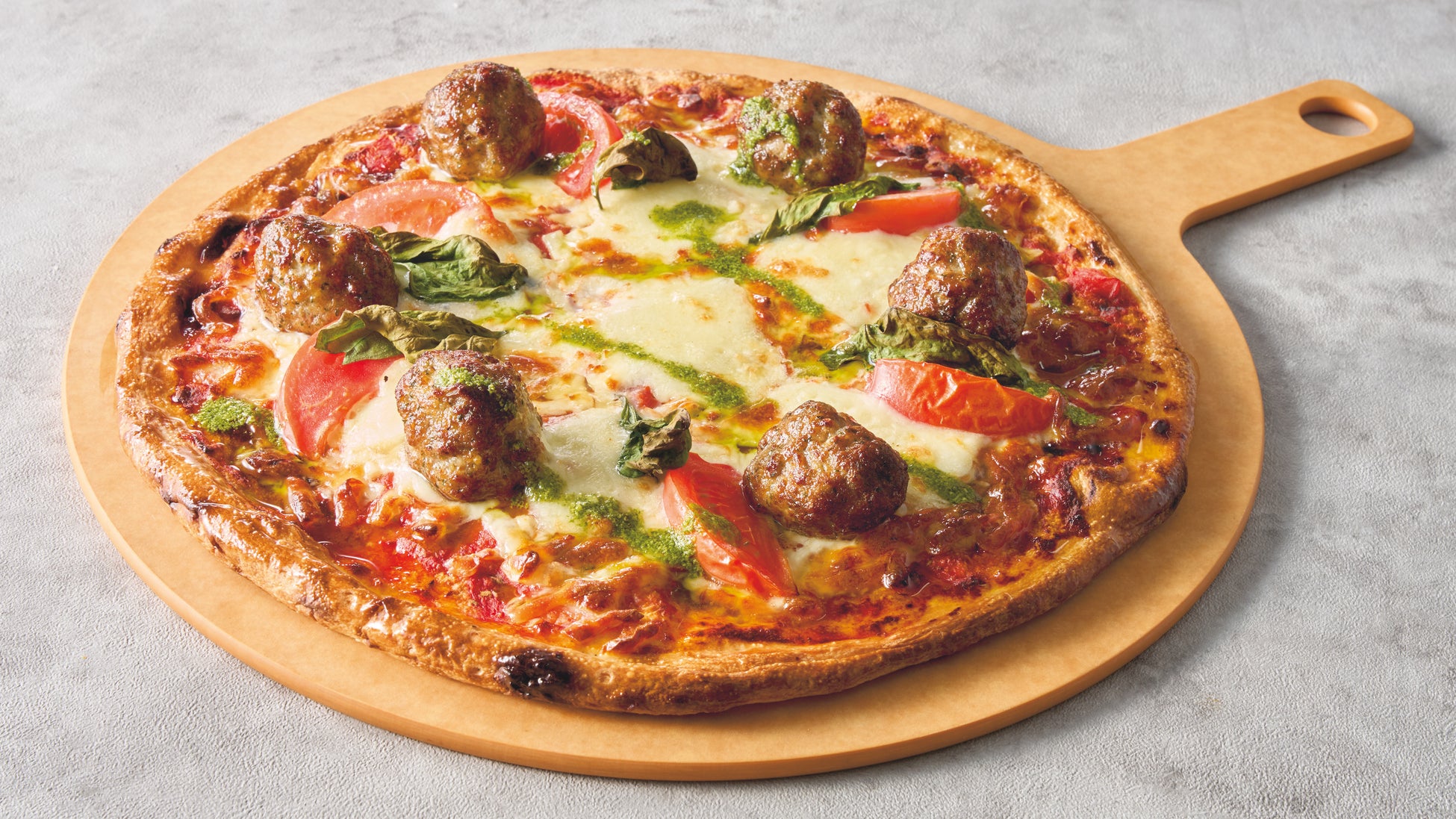 トマトとモッツァレラチーズのピッツァに、アンガスビーフを使用したボリューム満点のミートボールをトッピング! イタリアの風香る、パークサイド・グリルならではのメニュー。