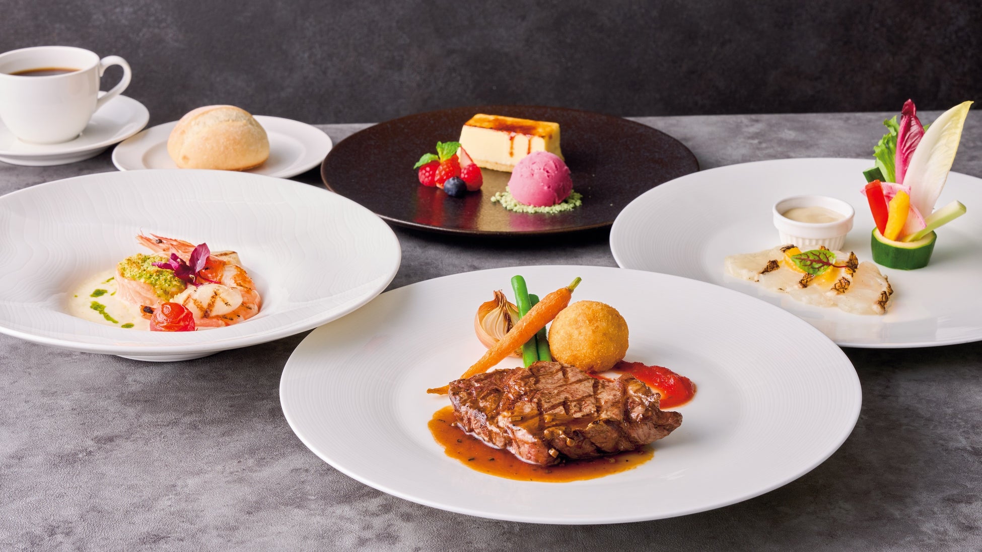 好きなメニューをチョイスして、自分だけのコースをオーダーできます。本格グリル料理やピッツァ、パスタなど多彩なラインナップから選べるディナータイムだけの特別コース。