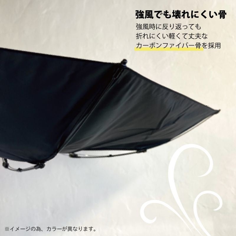 丈夫なカーボンファイバー骨を使用しているので、強風時に反り返り衝撃を逃すことができます。