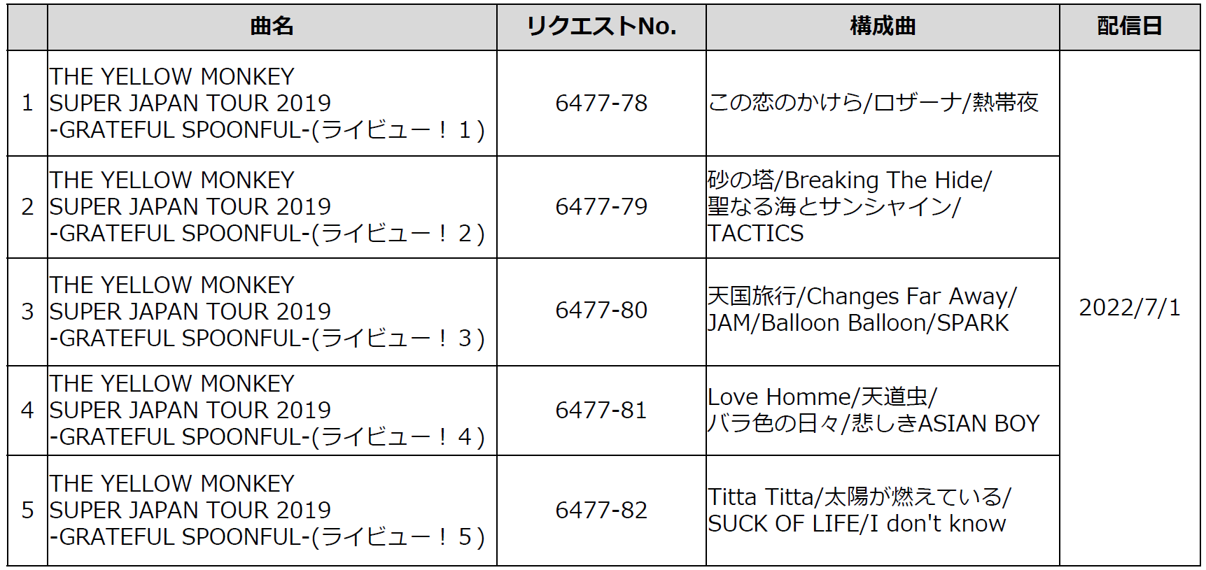 THE YELLOW MONKEY 配信リスト*