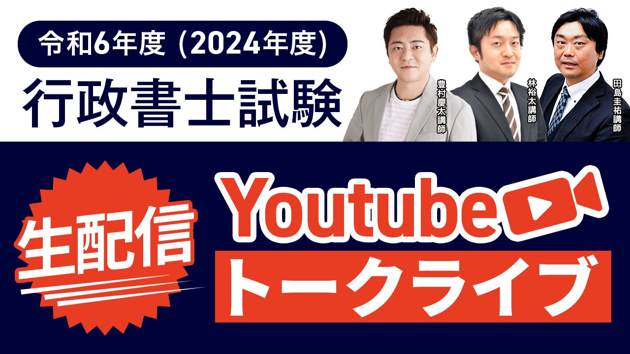 アガルートアカデミーは2024年行政書士試験の試験当日に実施した「解答速報」、講師3名による 「総評」「トークライブ」YouTubeL配信を会員登録不要で無料公開しております。
