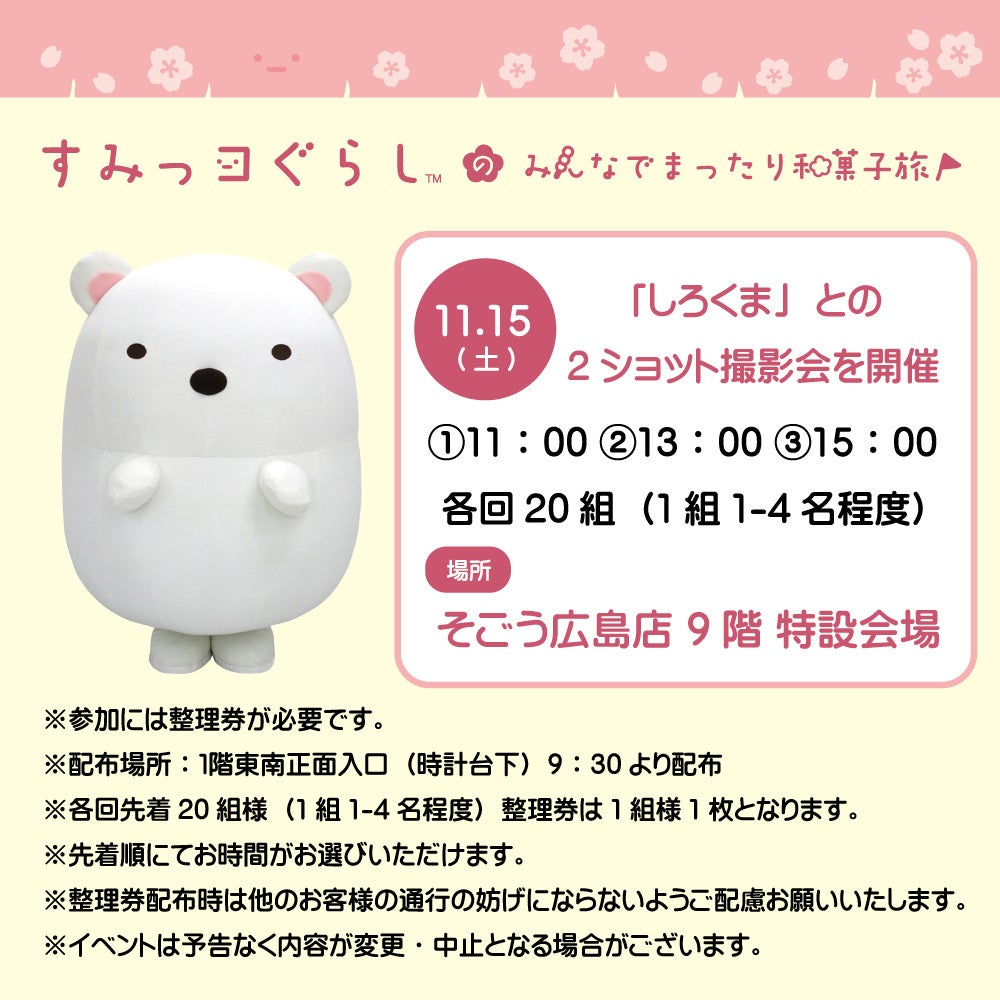 ③整理券に記載のお時間までに、〈すみっコぐらしのみんなでまったり和菓子旅 in 広島〉会場までおこしください。