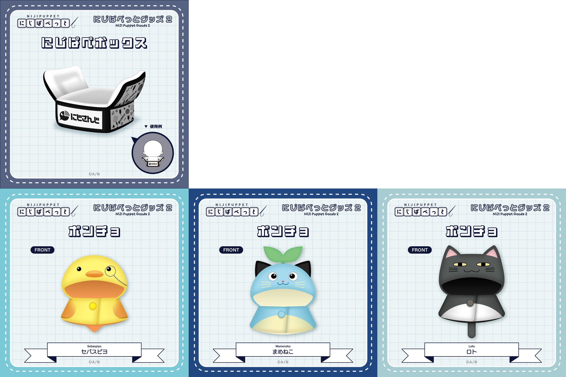 にじぱぺっとに着せて遊べる、セバスピヨ・まめねこ・ロトのデザインの可愛らしいポンチョです。