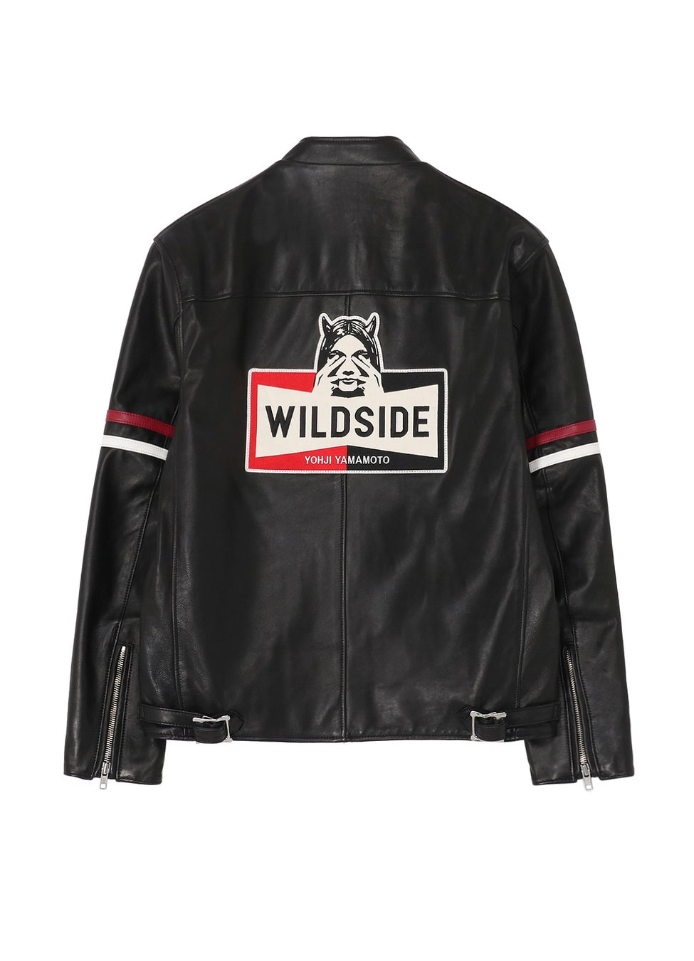 サステナブルな製法でなめしたラムレザーを使用したレーシングレザージャケットは、しっとり柔らかく、軽快な着心地です。コラボレーショングラフィックや両ブランドのロゴのワッペンをフロントバック両方に散りばめ、右袖には“WILDSIDE“のロゴを大胆に配した迫力ある1着となっています。