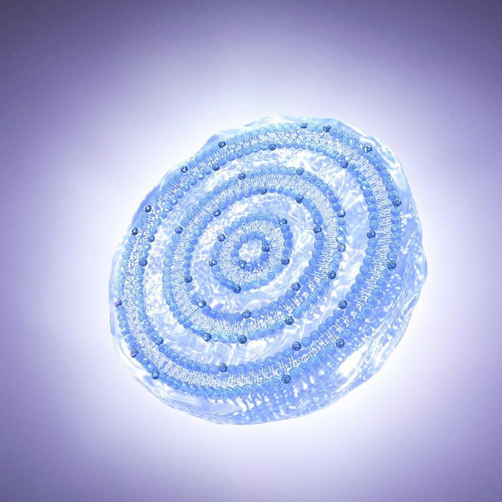 独自成分を角層深くに行き渡らせるため、当社が40年以上研究してきたリポソーム技術を水溶性成分の浸透をより一層高めたものへと深化させ、そのリポソームを含んだ「多重層バイオリポソーム®美容水」を37%配合(※6)しました。リポソームとは、たまねぎ状に幾重にも重なる生体組成成分リン脂質(※8)の層の中に美容成分を豊富に抱えた、直径0.1~0.3ミクロンの球状のマイクロカプセルです。今回開発した「親水性多重層バイオリポソーム」は、リン脂質(※8)の中でも親水性にすぐれたリゾリン脂質(※9)を組み込むことで、より安定的に化粧水に配合することが可能となりました。アレルギーテスト済み(※10)、スティンギングテスト済み(※10)、ノンコメドジェニックテスト済み(※10)です。