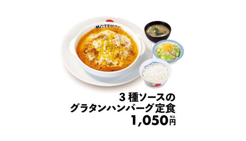 【松屋】あつあつの冬メニュー 「3種ソースのグラタンハンバーグ」 新発売