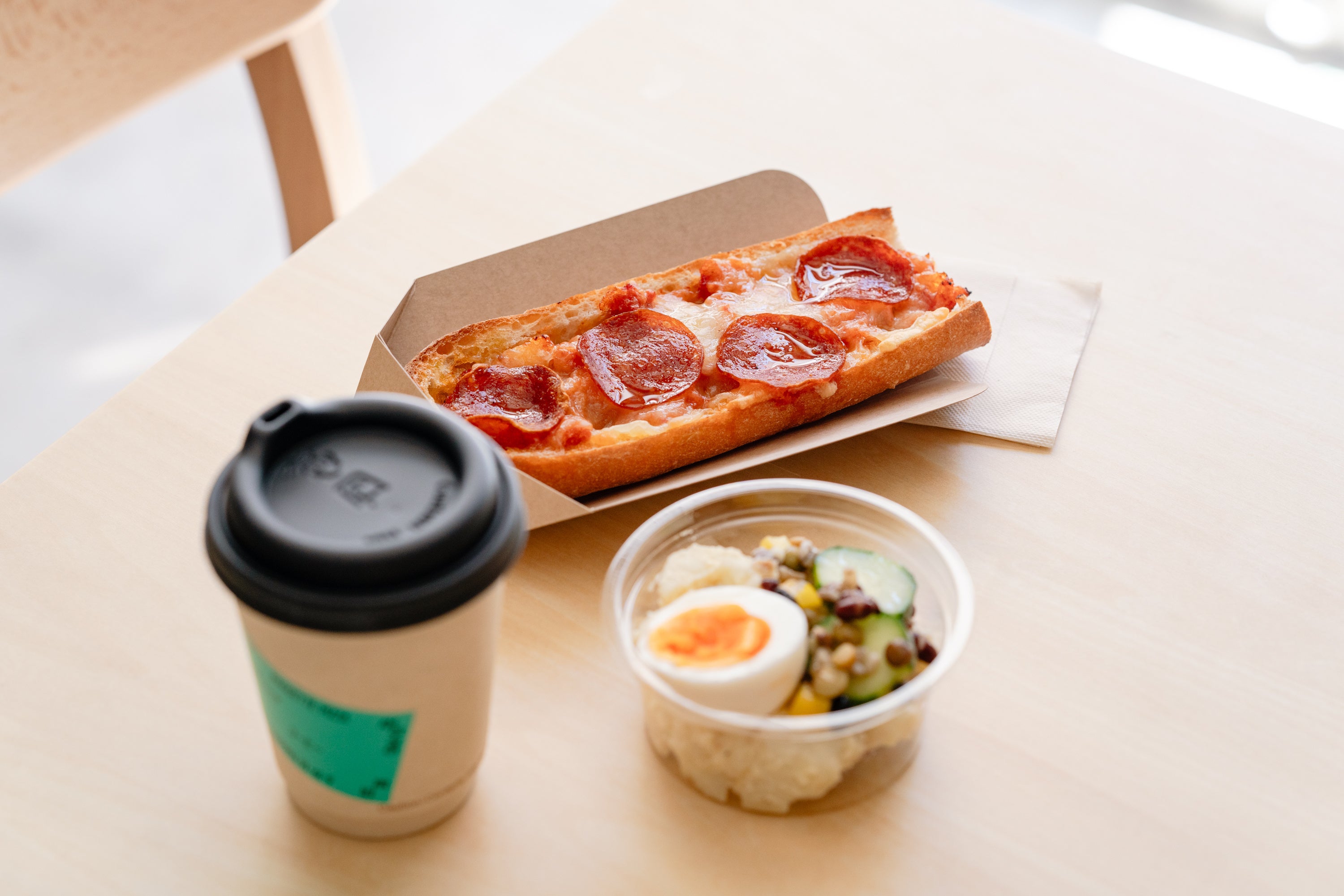 メインフードのバゲットピザは、バゲットを使用した新しいスタイルのピザトーストです。朝食にもおやつにも、お酒のおともにもどんな場面でも愛される逸品をご用意します。マルゲリータやナポリタン、ボンゴレポテトクリームなどトマトベース、クリームベースの数種類をご用意します。
