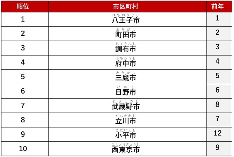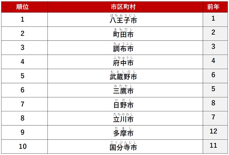 2位に「町田市」、3位に「調布市」がランクインしました。