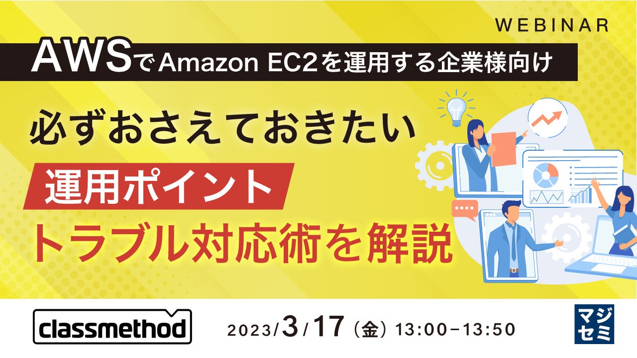 マジセミ株式会社は「Amazon EC2、運用ポイントとトラブル対応術」というテーマのウェビナーを開催します。
