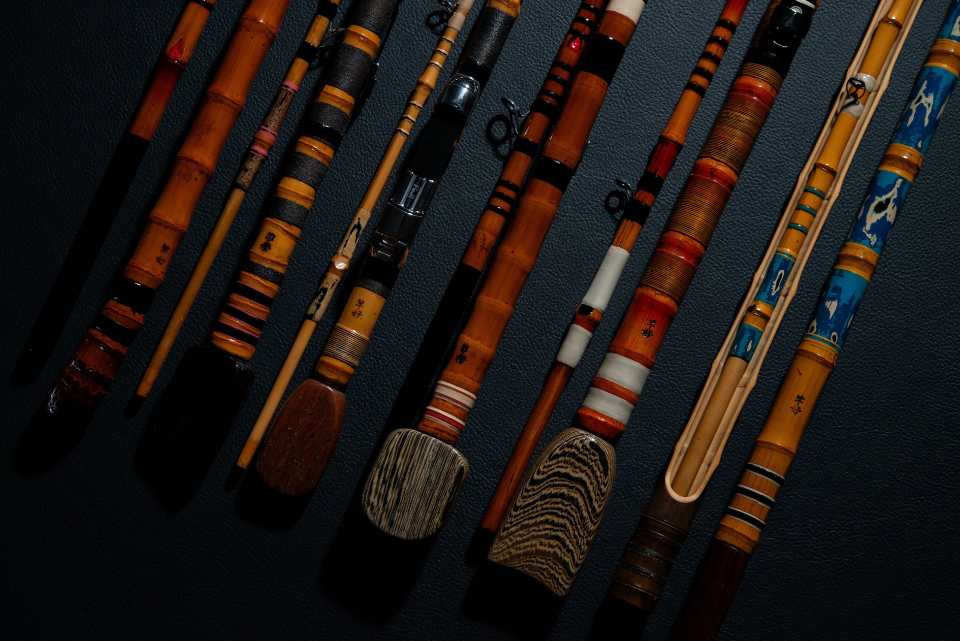 和竿とは主に竹や漆を使用して製作される日本の伝統的な釣り竿のことで、川や海の対象魚によって様々な種類があります。製作には100以上の工程があり、選りすぐられた竹を収穫したのち、乾燥や各工程を経て完成まで3年以上の時間がかかる手作業で製作された釣り竿です。「和竿の使い心地や釣り味は、他の素材では再現できない」という根強いファンも多く、竿師の目利きや竹を加熱する「火入れ」などの確かな技術によって生み出された完成品には1つとして同じものはありません。現在は後継者不足により、その技術の継承が問題となっています。