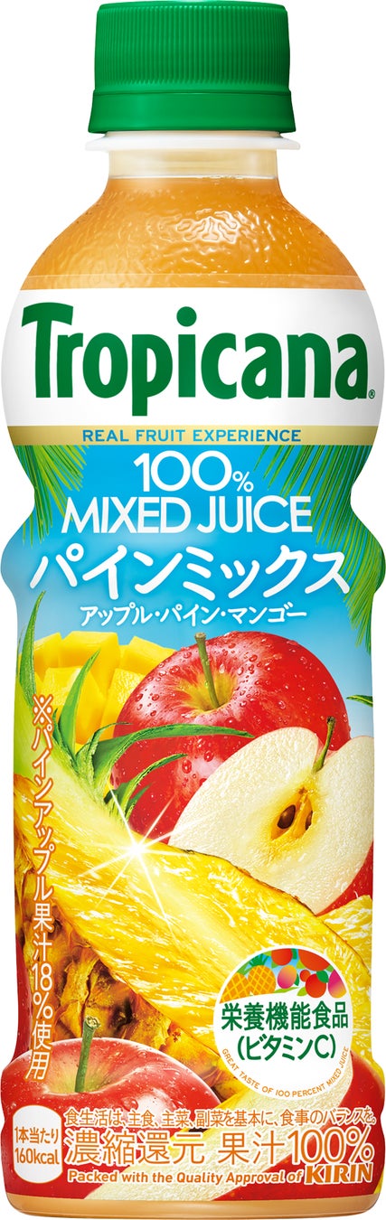 今回発売する「トロピカーナ 100% パインミックス」は、アップルにパインアップルとマンゴーをミックスしビタミンCを加えた、複数の果汁を使用した100%果汁飲料※です。パインアップルの濃厚な甘みと香りが楽しめる味わいは、仕事の合間のリフレッシュや夏の暑い日に飲んでいただくのにぴったりな商品です。本商品の発売を通じて、お客様の毎日に、おいしい健康をお届けします。