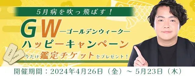 キャンペーン対象の鑑定を占っていただいた方には、ゴールデンウィーク限定の鑑定チケットをプレゼントいたします!是非、この機会に占ってみてください。