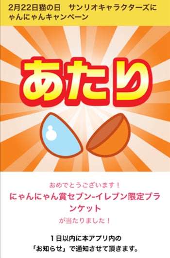 ※にゃんにゃん賞、にゃん賞ともに24時間以内にお知らせ配信