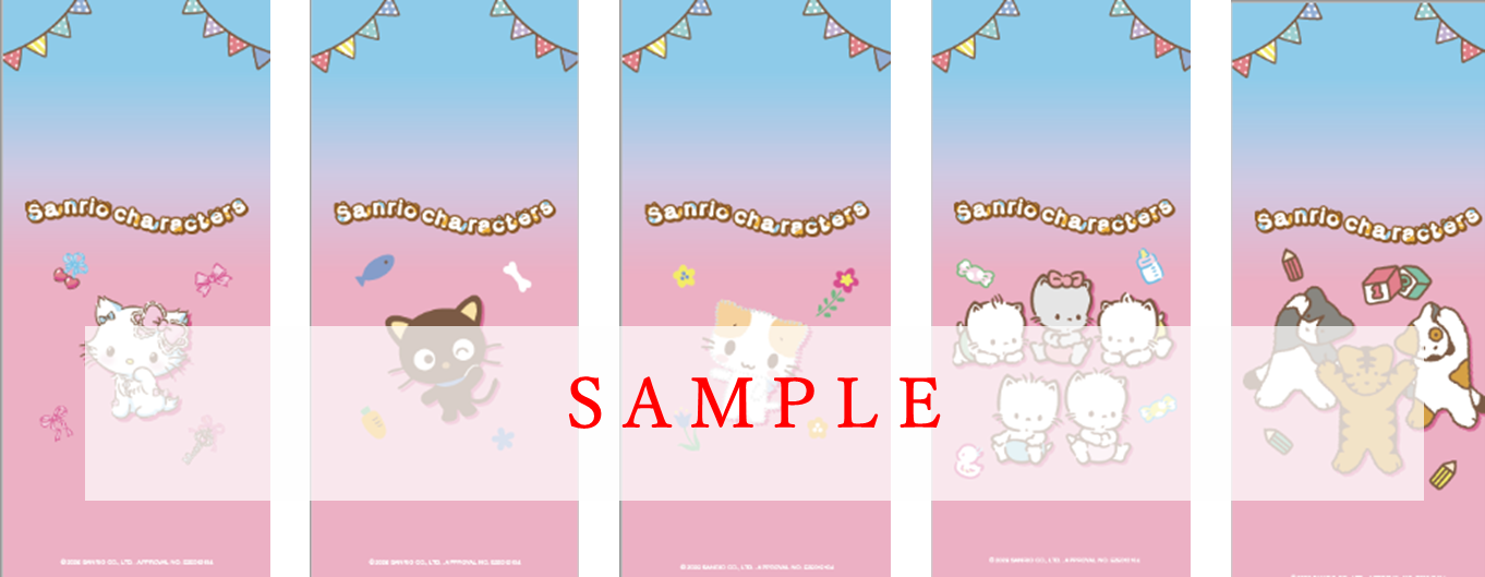 チャーミーキティ、チョコキャット、マシュマロみたいなふわふわにゃんこ、ニャニィニュニェニョン、ノラネコランドの5種類からお好きなスマホ待ち受け画面をお選びいただけます。こちらの5種類のサンリオキャラクターズを使用したグッズは史上初で、全種類コンプートしたくなるかわいさです。