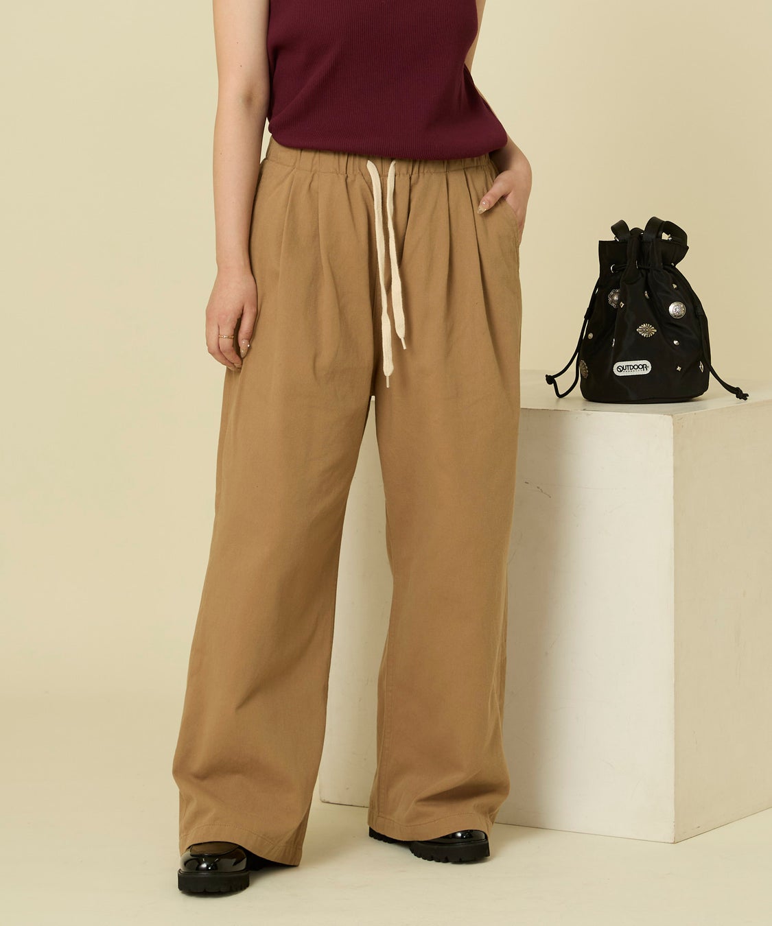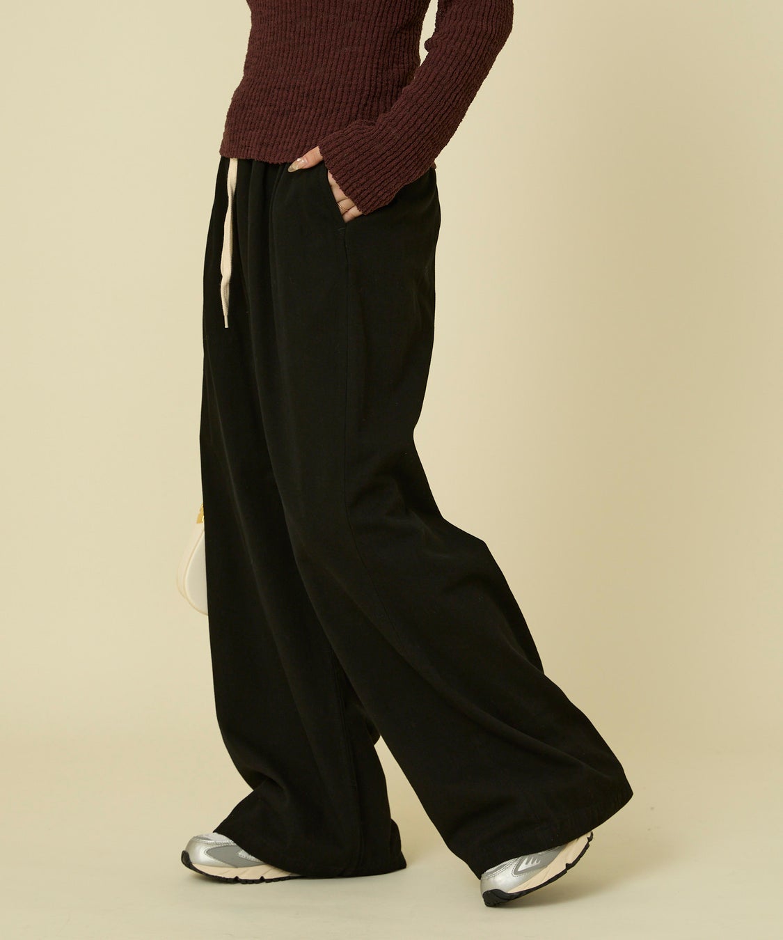●紐ウエストとゴム仕様でリラクシーな履き心地も魅力