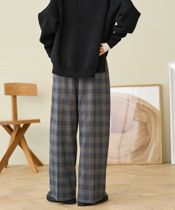 脚をきれいに見せるシルエットにもこだわり、タック入りの太すぎないストレートラインで、さまざまなスタイリングに馴染みやすいシルエット。