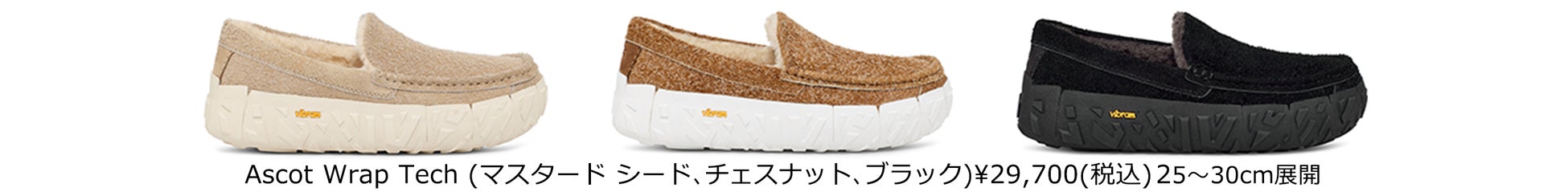最も注目すべき新作は、トレンドのラグアウトソールを採用し、人気のTasmanを春仕様のスマートカジュアルなシューズへと進化させたTasman Lug(タスマン ラグ)。ラギッドなサトウキビ由来のEVAアウトソールと、つま先にヴィンテージ加工がされたスリークなスエードのアッパーを組み合わせ、UGGを代表するツインシームのディテールを施しています。ソフトな履き口の内側にはUGGbraid™のデザインをさりげなくあしらい、すっきりしたデザインに仕上げています。UGGplush™とテキスタイルの2種類のインソールが付属しているので、季節にあわせて交換でき通年で履くことができます。インソールは防臭加工が施されているので、爽やかな履き心地が持続。サイドゴアで楽に脱ぎ履きできるので、車や飛行機での移動からオフィスでの着用まで幅広い用途で活躍してくれること間違いなしの一足。快適性と機能性が融合したAscot Wrap Tech(アスコット ラップ テック)は、履き心地の良さとスタイルを兼ね備えたハイブリッドシューズ。UGGのヘリテージスタイルであるAscotの快適性はそのままに、信頼のVibram Wrap Techアウトソールでアップデートすることで、アウトドアシーンなど着用シーンがさらに広がり、卓越したグリップ性とピュアで大胆なファッション性もプラスされました。内側には、最高にソフトなUGGplush™のライニングを施し、モールドフットベッドが優しく足を包み込みます。