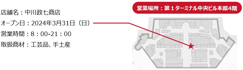 2024年3月31日、第1ターミナル中央ビル本館4階 AIRPORT MALL内(出国手続き前エリア)に、「中川政七商店」がオープンいたします。