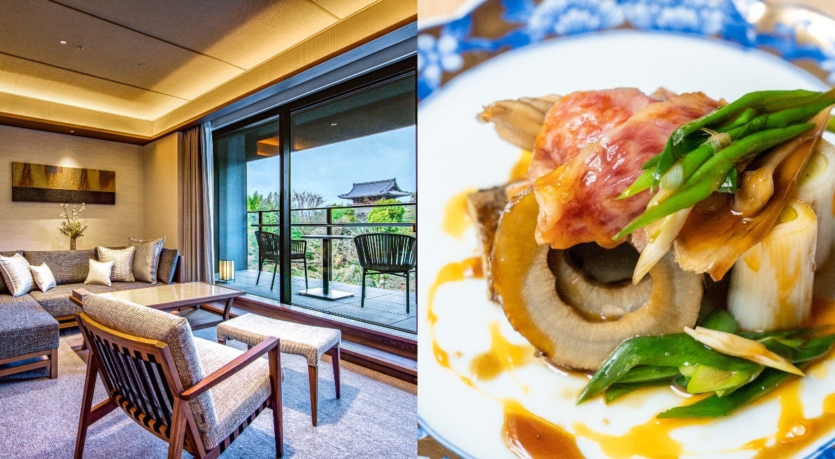 昨年開業の『ホテルオークラ京都 岡崎別邸』での上質な滞在、『祇園 岩元』の本格京料理をはじめ、提携店多数。