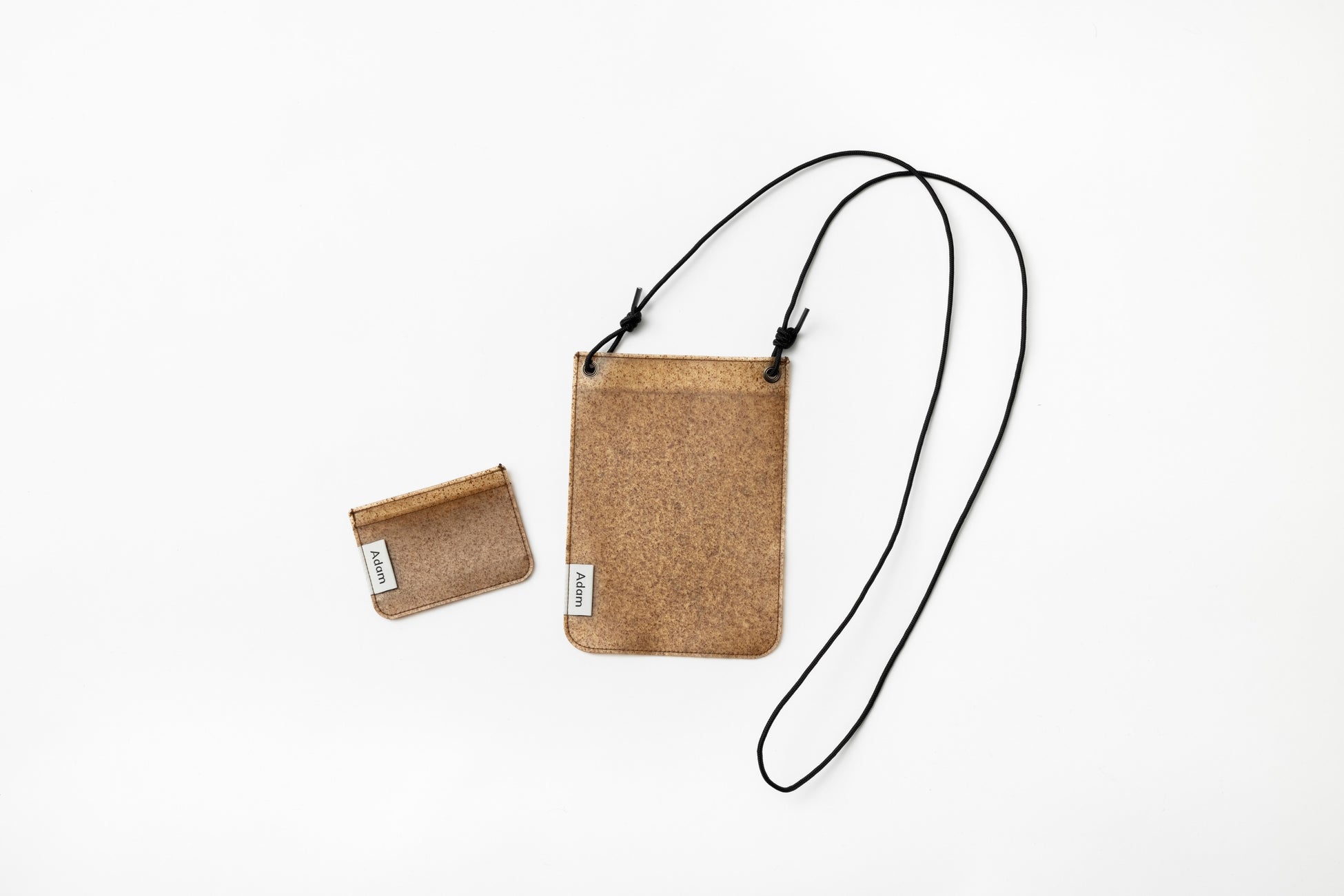 五所川原市で宿を経営する<株式会社KOMORU>は、デザインユニット「M&T」と素材の研究・設計機関である<Sozai Center>を結成しました。土地に根ざした要素を丁寧に掬い上げ、伝達・保存・利用が可能な素材/物資へと変換。世界中の風土を触覚化します。今回、青森のりんごの搾りかすを閉じ込めた素材を開発して、それらを用いてカードホルダーとポーチを製作しました。人間の手と風土が生み出す懐かしくも新しい素材で、次の一世紀を築いていきます。