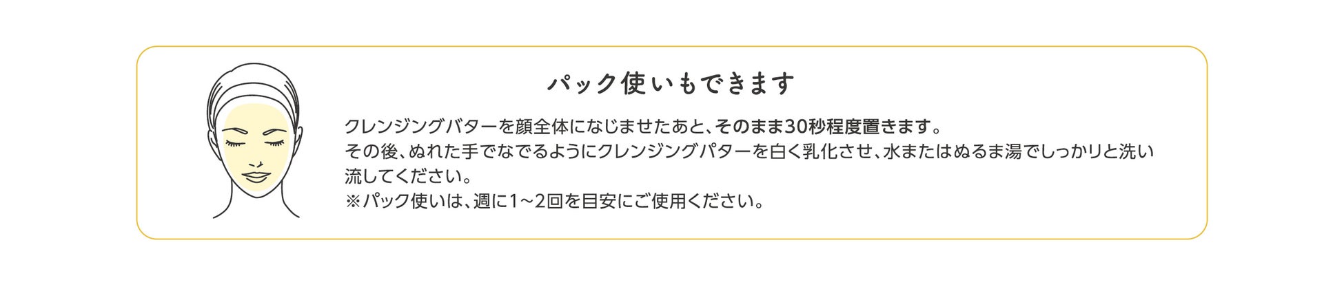 じゅわっととろけながら肌の凹凸にムラなく伸び広がり、メイク・毛穴のつまり汚れも心地よく溶かし出すように落とす“バター状クレンジング”です。