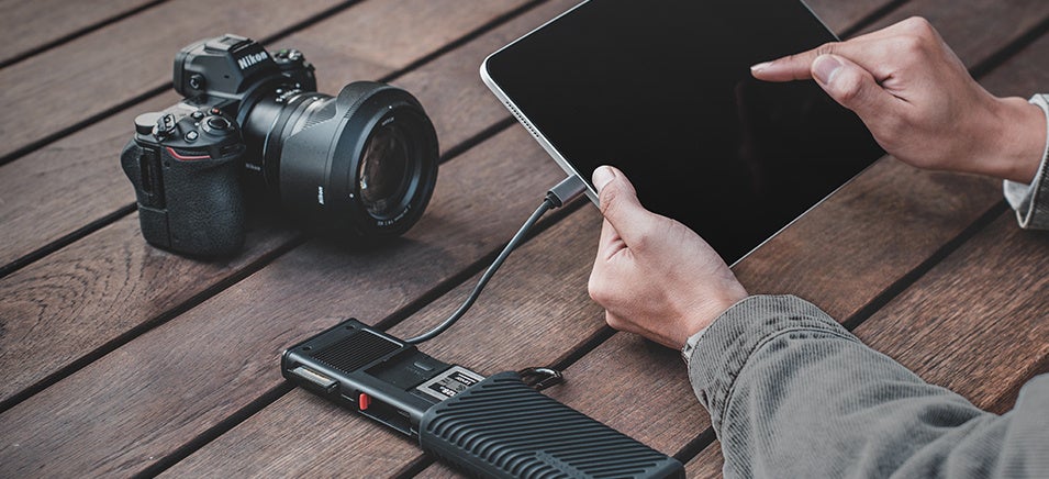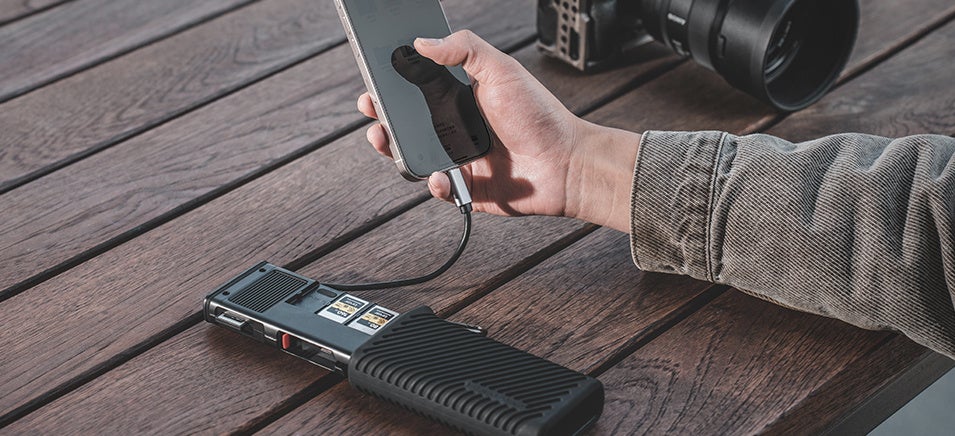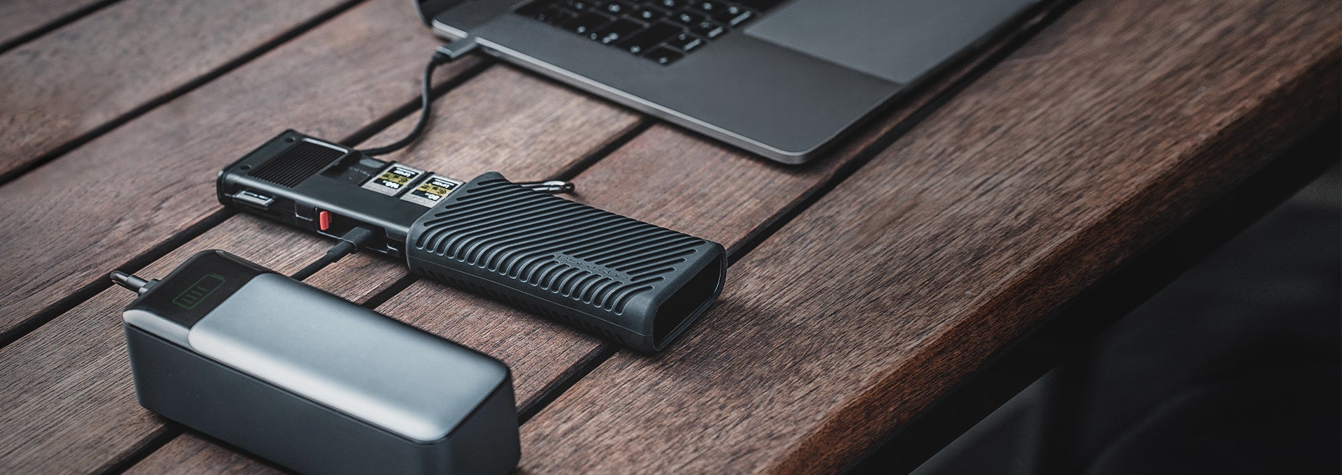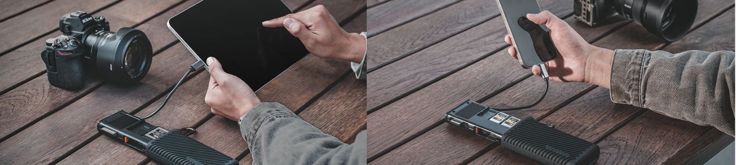 最大12枚のメモリーカード収納と最大1000MB/sのデータ転送ができる、タフで使えるフィールドワークのパートナー