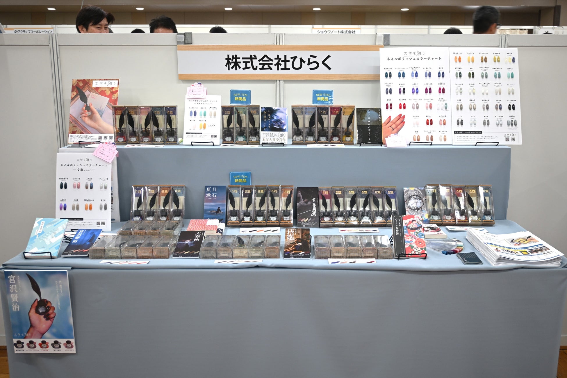 また日販グループからは、株式会社学研ステイフルが商品化のライセンス窓口を務める「くらはしれい」などの新商品を、カルチュア・エクスペリエンス株式会社が人気絵本「ずーっとずっとだいすきだよ」をテーマにした商品を、株式会社ひらくが文学作品をモチーフとしたプロダクトブランド「文学を纏う」のネイルポリッシュを、それぞれ出展しました。