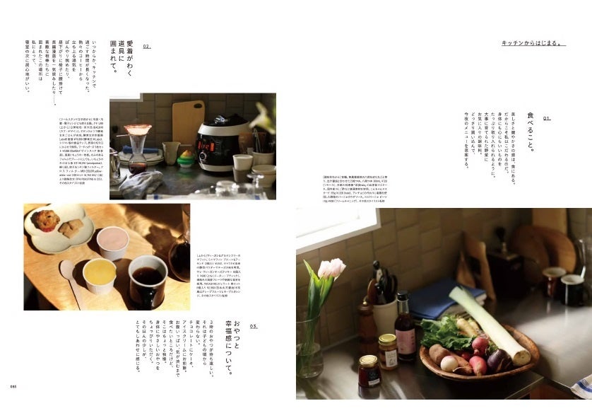 身体が喜ぶ食材を選び、味つけをする。おいしくなあれ、とおまじないをかけながら愛用のアイテムで調理をする。地球のことをちょっぴり気にかけながらお皿を洗う。キッチンで行うこの一連の流れには、ウェルネスな毎日を過ごすためのヒントが詰まっている。長く使い続けたいキッチンツールからアップサイクルによるお酒、グルテンフリーのおやつ、お掃除道具までをご案内。
