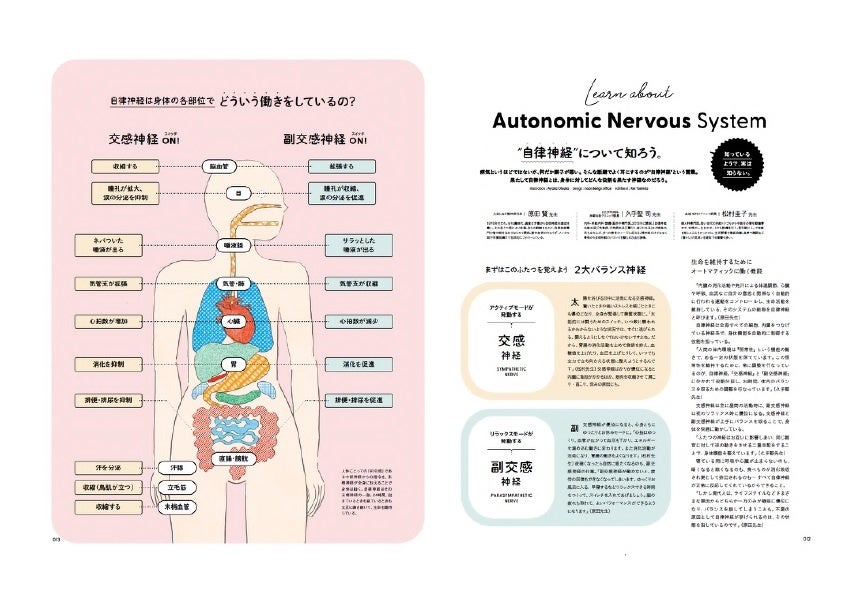 自分を取り巻く環境が変わり、新しい生活をスタートさせる人も少なくない春という季節。いつもと違う状況に緊張したり、つい無理をしたりと知らず知らずのうちに身体も心にも負担がかかっているはず。「いつもと調子が違うな…」そう感じたなら、自分の内側にある自律神経を意識してみて。朝、目が覚めて夜には眠ること、心臓が鼓動すること、呼吸すること、心地いいと感じること…そのすべての働きを担い、私たちが生きるうえで決してないがしろにはできない機能。自分自身のものなのだから、よく知って上手につきあうことで、あなたの毎日はきっと変わります。