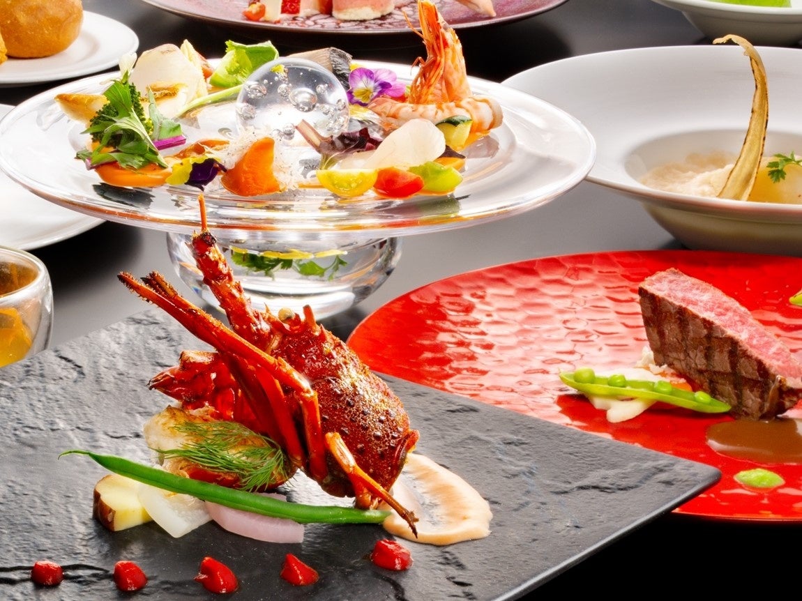 目にも鮮やかな前菜に始まり、ソースが旨さを引き立てる桜鯛や伊勢海老の他、メインディッシュの阿波牛をご堪能いただく極上のフレンチ会席で優雅なひと時を。