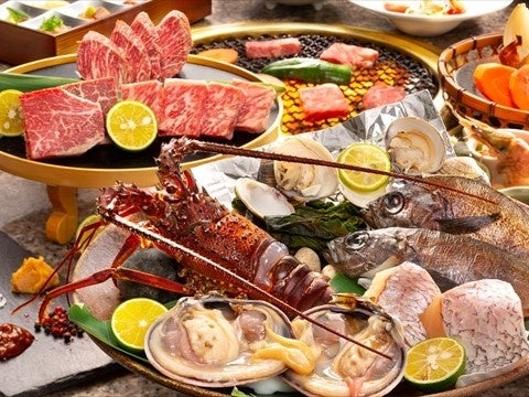 - 炭火焼 「海風」 阿波牛と海鮮炭火焼きコース<鳴門桜鯛若狭焼>